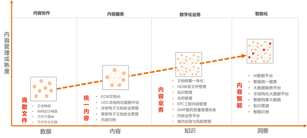 ECM系统软件涉及需求涵盖:企业网盘、文档管理、知识管理、文件安全交换外发,档案管理、影像文件管理,电子文档安全管理、文档云、ISO质量文件体系管理、GMP质量文件体系管理、非结构化数据管理平台、协同内容管理以及相关的AI产品和应用。